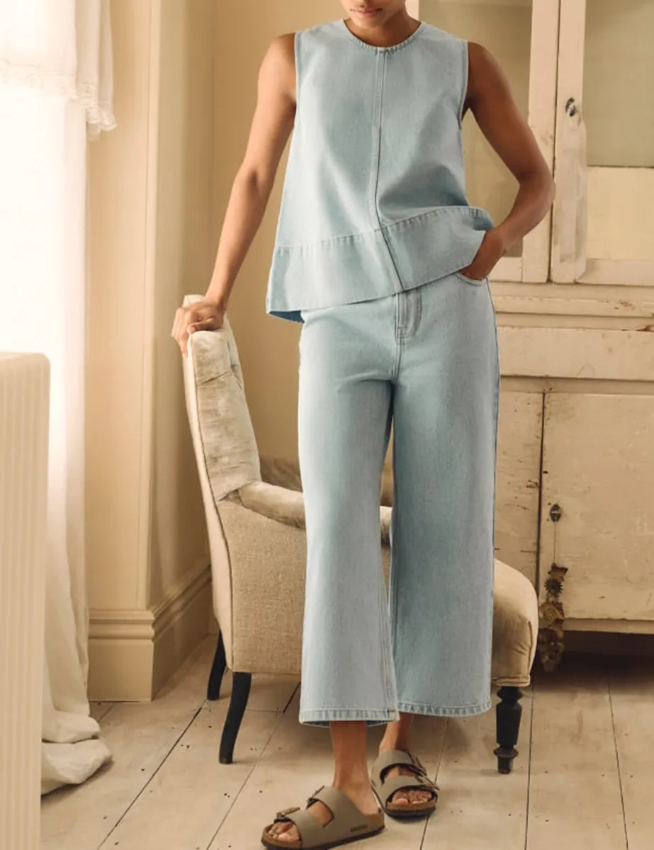 They’re also made entirely from organic cotton in a light blue vintage wash. As part of our journey towards circularity, we’ve removed rivets from all our denim styles. Instead we’ve reinforced pressure points with responsible bar tacks. Style yours with shoes worth showing off.