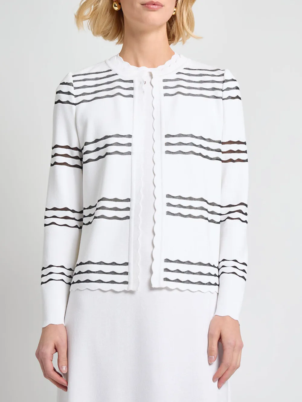 Perfect for women who appreciate classic, elegant styles, the Hollow striped jacket is a versatile addition to any wardrobe. Whether paired with a dress for a special occasion or worn with casual pieces for everyday sophistication, this jacket offers both style and comfort with its tailored fit and beautiful scalloped detailing.